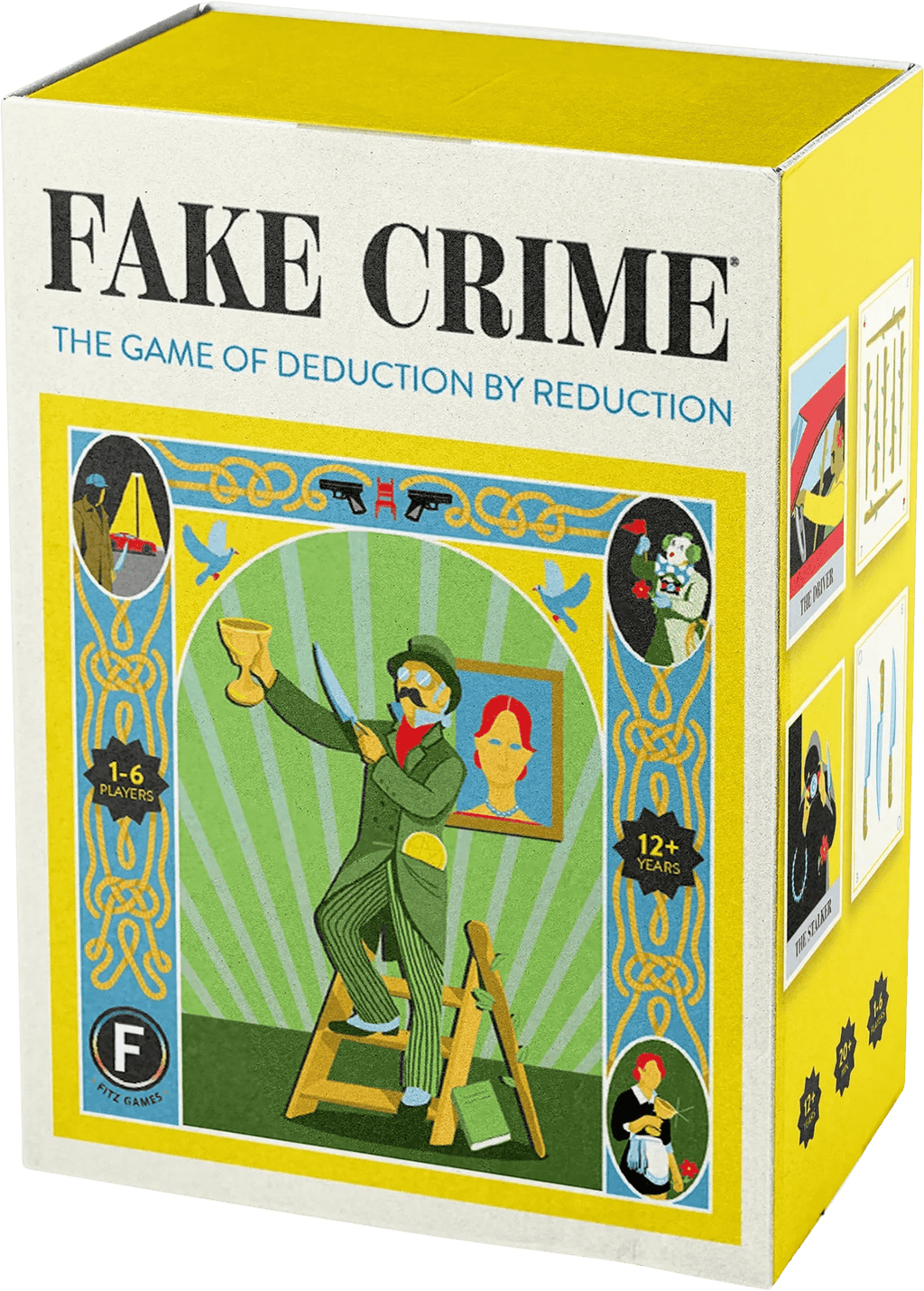 Fake Crime is an intuitive yet innovative game where the art is part of the gameplay! Play clue cards to exonerate suspects by naming an object that appears on both cards. Other investigators must follow suit as everyone scrambles to be the first one to catch the killer. Pick your suspect and pit your sleuthing skills against your rivals in this simple yet sophisticated game of mystery and murder. Don't have any rivals? Try the solo mystery challenge mode.
