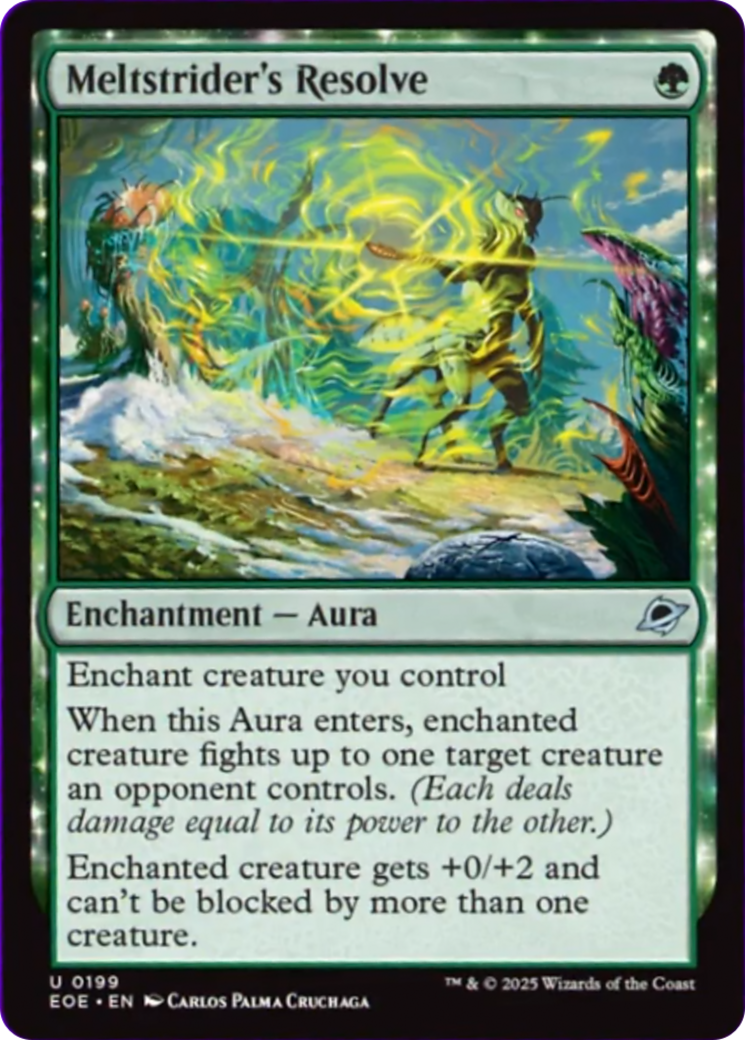 When this Aura enters, enchanted creature fights up to one target creature an opponent controls. (Each deals damage equal to its power to the other.)