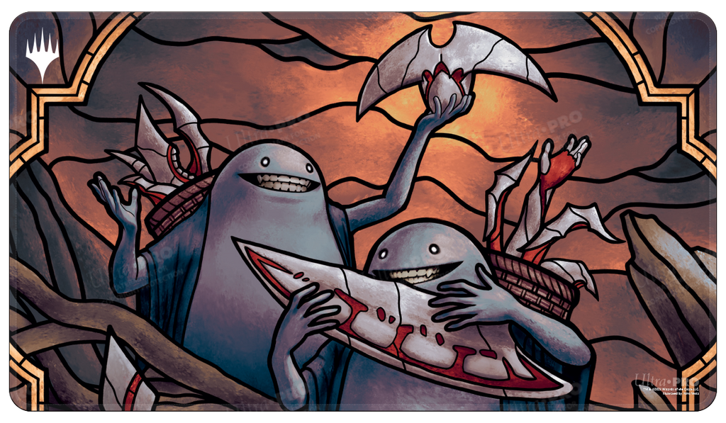 White Stitched Playmats featuring popular Magic: The Gathering artwork. Made with a soft fabric top to reduce damage to cards during play and a non-slip rubber backing to keep the playmat from shifting during use, playmats enhance the gameplay experience. The stitched edges offer an added premium feel. With dimensions of approximately 24 in. x 13.5 in., a playmat also makes an excellent oversize mousepad for home or office.