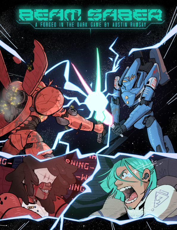 | Beam Saber is a Forged In The Dark RPG about the pilots of powerful machines in a war that dominates every facet of life. They are trying to do their part, then get out physically and mentally intact. The organizations that perpetuate The War throughout all of known space are too incomprehensibly huge to take down. There is no “winning” The War, there is only surviving it. Hopefully you can help others get out too. This game is best played with 4 or 5 players, with one player filling the role of Game Master, and the other players will be the protagonists of the story. Engage challenges on a titanic scale! Each pilot has a custom vehicle created from the ground up to suit their desires. The base frame can be humanoid, a more traditional vehicle, or something completely bizarre! They can be equipped with holo-projectors, grapnel anchor tools, missiles, and much more. Take advantage of your vehicle's Quirks (such as Loads of Guns, Exposed Boosters, and Ominous Appearance) to more effectively overcome obstacles. Or lean into your machine's faults for XP! Bombard, Scan, Maneuver, and more to deal with threats. There are several pilot types players can choose from, each facing The War in a unique way, and all have a powerful vehicle to command. Aces are daring drivers. Bureaucrats are clever logisticians. Empaths are compassionate psychics. Envoys are diplomats and spies. Hackers are subversive technicians. Infiltrators are stealthy operators. Officers are calculating tacticians. Scouts are pathfinders and snipers. Soldiers are terrifying infantrymen. Technicians are chemists, mechanics, and biologists. The pilots are part of a squad, which is created through a consensus by all the players. Just like a pilot, the squad gets a “character sheet”. The Consulate spies and politicks. The Frontlines grind the enemy to dust. The Logistics deliver the goods. The Mechanized Cavalry strikes fast and hard. The Profiteers sell what people can’t get. The Recon are spies, thieves, and sneaks. The R&D advance The War’s technology. The REDACTED neutralize targets. "Every part of Beam Saber pulses with love for the mecha genre, and makes it fun to play. Vehicle Quirks make the problems and potential of giant robots exciting parts of the action; Cutting Loose with the other players helps grow relationships among your PCs through tense and tender moments between missions; and Pilot Drives ask each player "what do you want so bad that you’ll risk getting into that coffin of a cockpit one more time. And then one more time after that..." Every one of these makes it feel like you're in a Gundam anime--it's clear Austin knows and loves the mecha genre and Beam Saber brings it to life at the table." - Mobile Suit Breakdown "Beam Saber is the mech anime RPG I've been looking for for years. Detailed and customizable, but also streamlined and easy to pick-up and play. It manages to be the best of both worlds." - Jeff Stormer of Party Of One Podcast Cover art by Vincent Patrick. Interior art by Vincent Patrick, Cory "Hadrian" McDaniel, Atlas Sellman, Christine Blight, Imani Kelker, Andrew Ferris, Ben Fleuter, Ardal Then, and Mal Peters. Layout by Sasha Reneau Cartography by Kate Moody. |